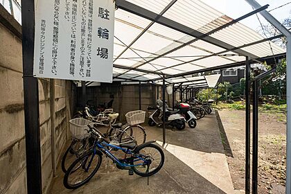 マンション奥側に位置する自転車置場(2025年4月撮影)