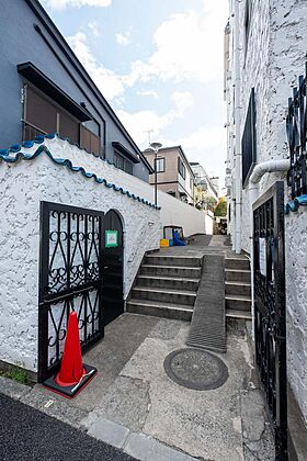 道路面より階段で上がった部分がメインエントランスロビーです(2025年4月撮影)