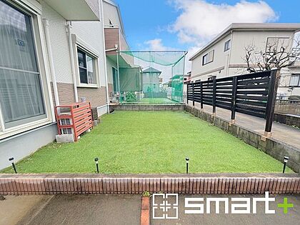 〜人工芝のある綺麗なお庭〜 ・標準で人工芝を敷設しておりますので、見た目にも綺麗なお庭となっております。 ・人工芝の場合雑草が生えてこず、管理が楽なのも嬉しいポイントです。