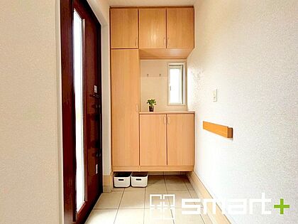 〜穏やかな陽の入る玄関〜 ・玄関ドアのガラス部分に加えてシューズボックスの間に窓を設ける事で穏やかな陽の入る玄関に。 ・ご家族やご来客を明るい空間で出迎えてくれます。
