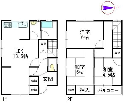| 間取り | 3LDK | 構造及び階数 | 木造 2階建て(連棟式) |