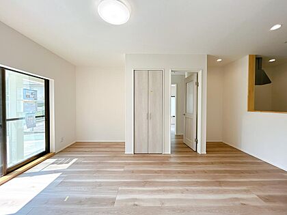 【リフォーム済】1階洋室6帖です。建具の交換、フローリング張り、クロスの張替え、照明器具交換を行いました。ウォークインクローゼットを新設。お部屋のスペースを存分に生かせる空間です。
