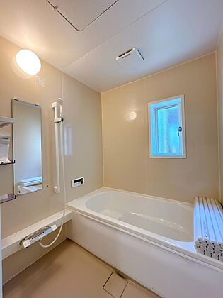 【リフォーム済】ユニットバスは新品に交換しました。浴槽は大人も足を伸ばしてゆったり浸かれる広さです。