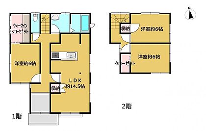 【リフォーム済】3SLDKの間取りです。1階洋室にはウォークインクローゼットを新設しました。