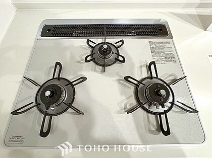 3口ガスコンロでお料理のスピードもUP。効率よくお料理ができますね。