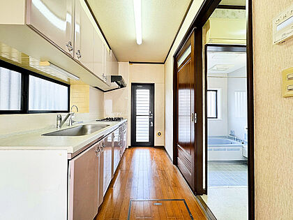勝手口付きのキッチン。