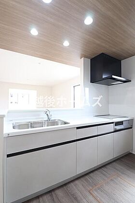 キッチンは使いやすいシステムキッチンです。浄水器一体型の水栓も標準装備しています。