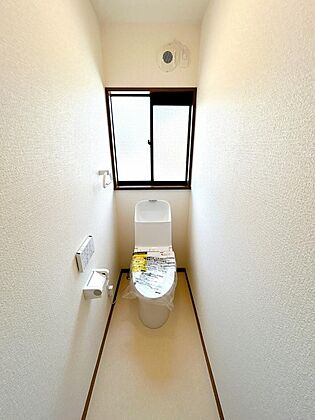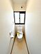 【リフォーム完成】トイレの写真です。新品交換、クッションフロア張替・クロス張替え・照明交換を行いました。