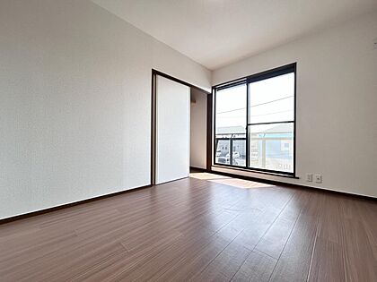 【リフォーム完成】1階洋室の写真です。床クッションフロア重ね貼り・LDKとの可動間仕切り建具新設・クロス張替え・照明交換を行いました。使い勝手の良いお部屋ですね♪