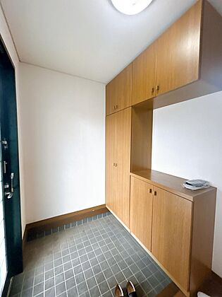 【リフォーム完成】玄関ホールの写真です。シューズBOXはクリーニングを行いました。たくさんの靴を収納することができますよ♪