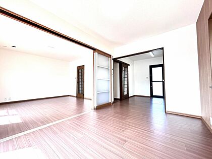 【リフォーム完成】リビングの写真です。床はクッションフロア重張り、壁と天井はクロス張替えを行いました。