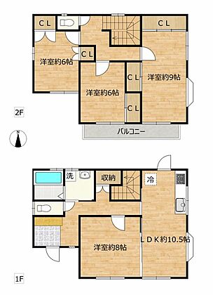 1階にLDK+1部屋ある間取りです。上下階にトイレあります。3〜4人家族向けのお部屋数ですね♪