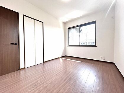 【リフォーム完成】2階南東側洋室の別アングル写真です。床クッションフロア重ね張り・壁・天井クロス張替・照明交換を行いました。