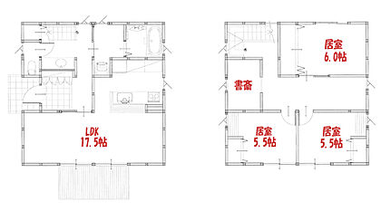 LDK ソファーを置いてもゆとりあるリビング空間。平屋で無駄な動線のない間取りになります。