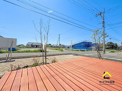 日当たり良好な南向き。ウッドデッキがあり、洗濯物干しスペースとしてはもちろん、ガーデンテーブルを置いてカフェテラス気分を味わったり、お友達を招待してBBQ を楽しむスペースとしても十分な広さです。