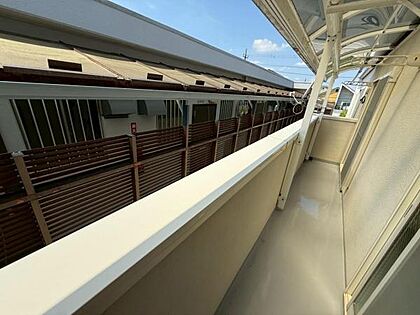 南向きで陽当たり良好なバルコニーです。奥行きがあり、洗濯物を干すには十分なスペースがあります。たっぷりの陽光と心地よい風を感じられる、贅沢な空間です。