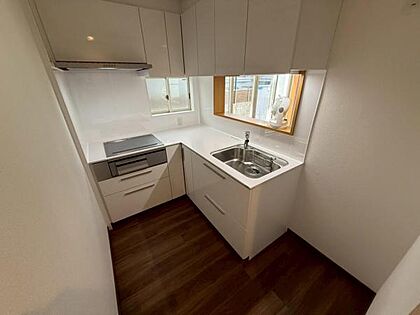 キッチンは作業スペースを広く確保できるL字型タイプです。キッチン内の動線が短く効率よく動けます。複数人での調理も快適に行えます。
