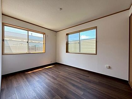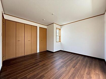 約9帖の2階洋室です。バルコニーから光が差し込み、明るさと心地よさが生まれる空間です。ゆとりのある広さで主寝室にぴったりです。