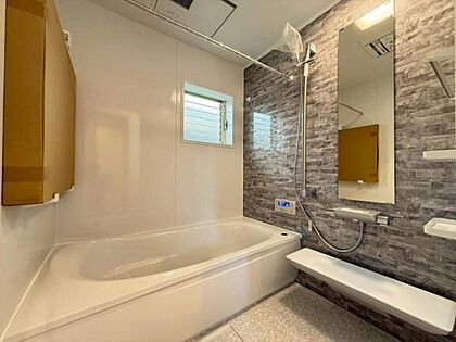 艶のある壁パネルが上品な空間を演出するバスルームです。窓付きで自然換気ができるのも嬉しいポイントです。1日の疲れを癒すバスタイムを過ごせそうですね。