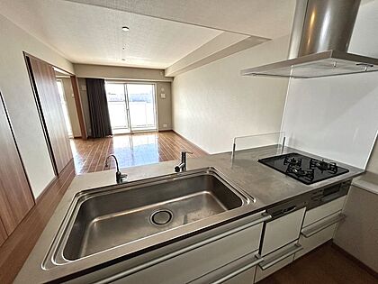 リビングと一体感のある対面式キッチン。家族と会話を楽しみながら調理ができます。