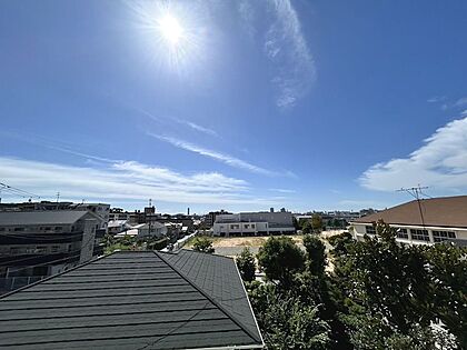 南側バルコニーからの眺望。南向き6.2mのワイドバルコニーは、LDと洋室2から出入り可能で、洗濯物もたっぷり干せる開放的な空間です。