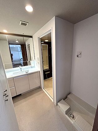洗濯機置場もゆとりがあり、家事動線の良さを感じられる空間です。