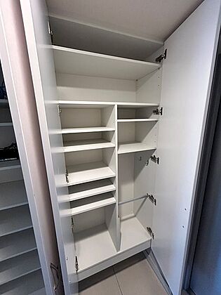 たっぷり収納可能な下足箱。可動式の為、傘なども収納できます。