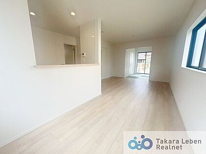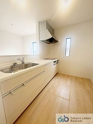 リビングを見渡せる対面式のキッチンでご家族とのコミュニケーションが捗るご家族思いな設計。