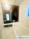 落ち着いた色のアクセントパネルを使用しシンプルかつ、清潔さを感じさせるバスルーム。