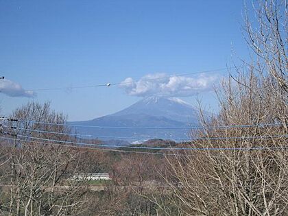 【接道】 ( 公道 北東 5m ) 2階から富士山一望。室内の床、壁が厚い板張り、広い敷地で畑ができます。 |