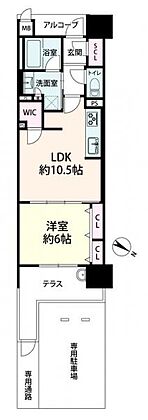 ≪間取り図≫ 1階部分・北東向き・1LDKの間取りです。テラス・専用駐車場付き