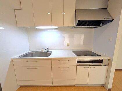 ◆キッチン◆火を使わないIHクッキングヒーターだから、お子さまがいるご家庭でも安心。天板はフラットでお手入れも簡単!デザインもすっきり美しく、毎日の料理がちょっと楽しくなるシステムキッチンです☆