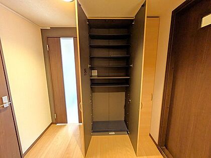 ◆廊下収納◆棚付きの廊下収納は、効率よく整理整頓ができて便利です。収納ボックスや仕切りを活用し、頻繁に使う物を取り出しやすい位置に配置するとさらに快適です☆