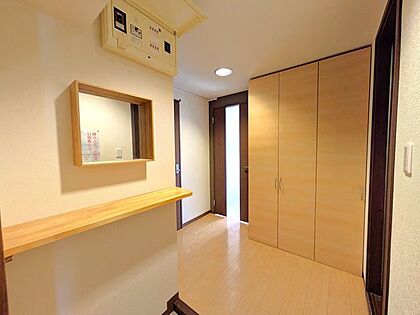 ◆ホール◆明るい木目調が印象的な玄関スペースです。収納が充実しており、靴や小物をスッキリ整理できます。カウンターや鏡も併設され、使い勝手が良いデザインです♪お気軽にお問い合わせください!