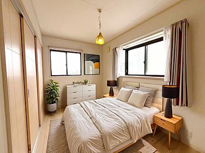 〜Bed Room〜 2面採光を確保した明るい室内は、風通しも良く、大変居心地の良い空間となっております。爽やかな風を感じて起きる朝は、快適生活の始まりに!日当たりや通風がとても良い住まい♪
