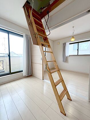 お絵かき、工作、自由研究・・・。お子様の思い出もたっぷり収められる小屋根裏収納。