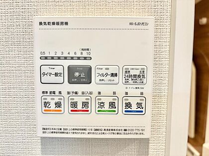 浴室涼風暖房換気乾燥機付きなので、お天気が悪い日のお洗濯も安心!