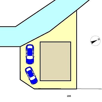 【区画図】駐車場は縦列2台(車種を選びます)に拡張いたします。※車庫証明の台数ではございません