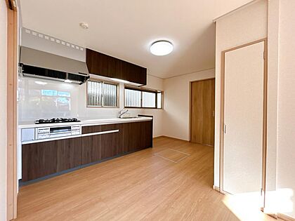 【リフォーム前】キッチン別角度写真です。勝手口は塞ぎ、隣の和室と洋室を拡張しLDKに変更いたします。