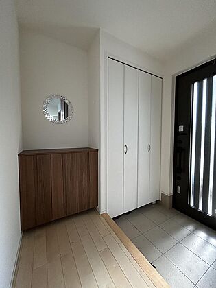 【玄関】玄関には、フロートタイプのシューズボックスが設置されています。下部のスペースに日常使いの靴を置くことも可能です。