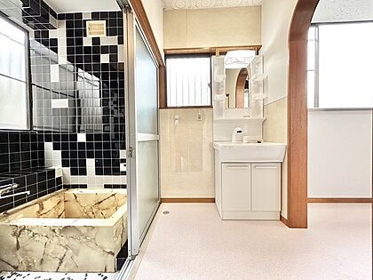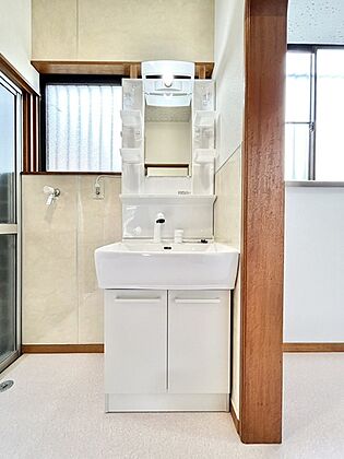 洗面化粧台は清潔感の漂うホワイトをベースカラーに、シンプルなデザインで。