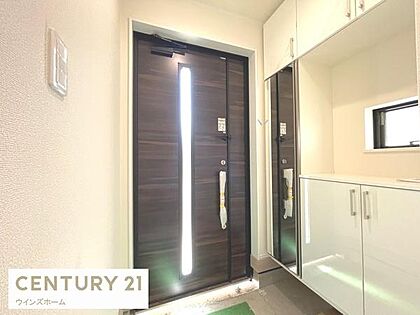 •  白を基調とした明るい玄関は豊富な収納でスッキリと片付き、清潔感のある印象に。毎日の出入りが快適になる機能的な空間です。全身ミラーは外出時の身だしなみチェックにあると嬉しい設備です。