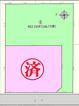 土地面積/坪(坪単価) 352.00m2(実測)/106.67坪(8.30万円) 代表的な接道 一方