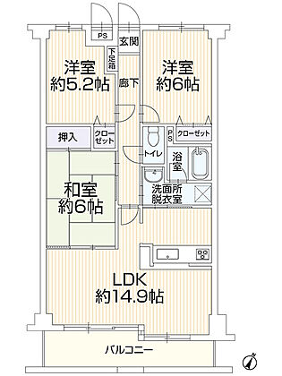 間取り 3LDK 専有面積 69.78m2(壁芯)