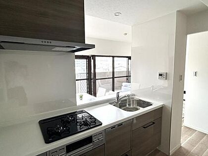 •  キッチンです。床の色に合ったデザインなので圧迫感のない空間になってます。