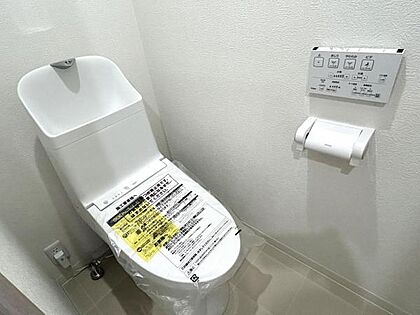 •  トイレです。こちらも新品交換いたしました。白基調の空間で清潔感を感じます。