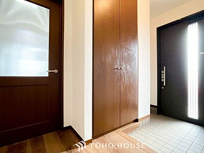 明るくコントラストのある、開放感と清潔感を兼ね備えた玄関。