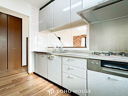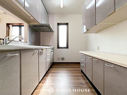 明るい自然光が入る対面キッチン。家族そろってキッチンに立っても調理がしやすく余裕の広さ。
