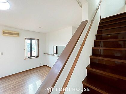 パブリックゾーンとプライベートゾーン繋ぐ階段。豊かな陽光が注ぎ込み、爽やかな住空間を演出。