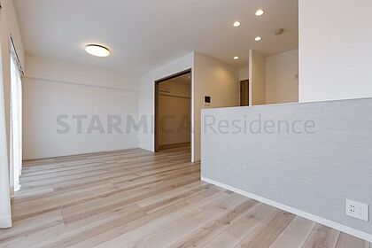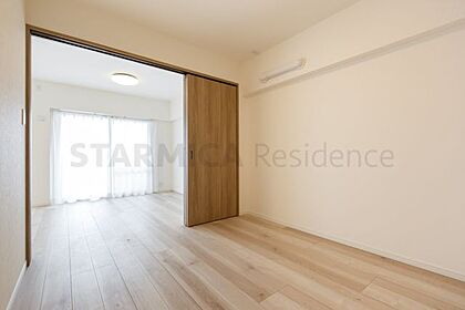 リビング隣の約5.0帖の洋室は引き戸を開けばゆとりのある空間に